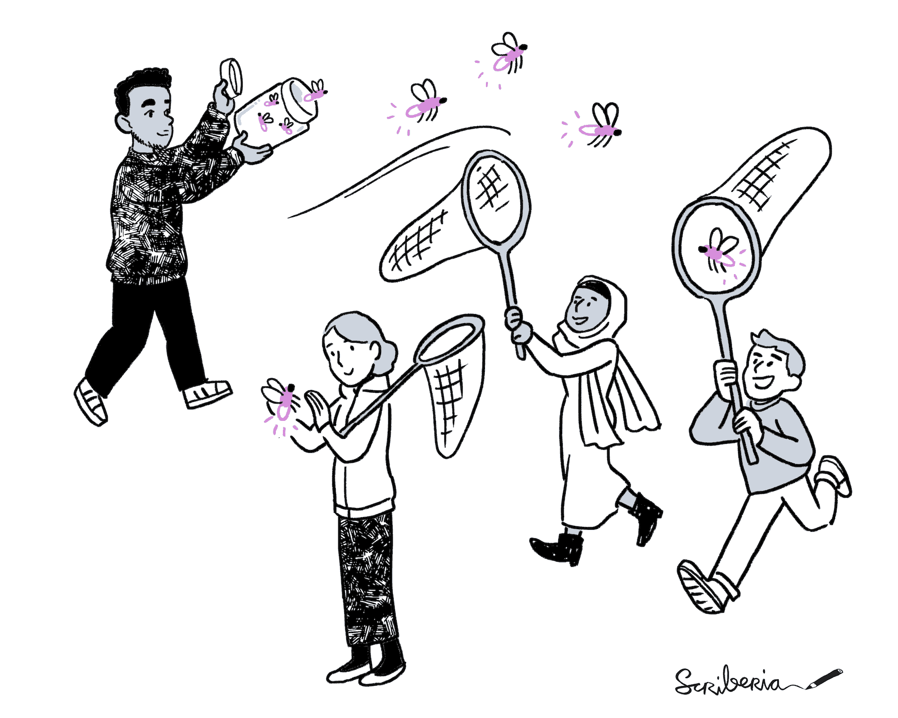 Fig. 58 Catching bugs. The Turing Way project illustration by Scriberia. Used under a CC-BY 4.0 licence. DOI: 10.5281/zenodo.3332807.#